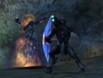 Jackals may well take the cake as the most annoying enemies. As the manual says, they're not particularly strong; but their energy shields are, for all intents and purposes, impervious. So unless you're very good (and can, for instance, slot a shot to hit the Jackal through the small gunport on the shield), they can be very difficult to get rid of. Grenades are indeed effective, as are melee attacks (which will disrupt their shields.) Also, their shields can be overloaded by a charged plasma pistol shot. Screenshots![]() |