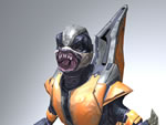 From the Halo 2 Manual (Covenant Version): Stout and numerous, the Unggoy [Grunts] long have been the lifeblood of out Covenant's infantry. They will obey and order in the service of their duty and fight well with plasma pistol, turret, or in vehicles. Unggoy will as ever fight well with their comrades the Kig-yar [Jackals], and obey the directives of the Sanghelli [Elites]. The funny but occasionally dangerous Grunts, known as Unggoy to the Covenant, are back in Halo 2. However, the Grunts aren't simply cannon fodder this time, and should be feared in numbers. Because of the new AI in Halo 2, Grunts will be able to call for back up, as well as a give it. But as in Halo: Combat Evolved wipe a group of Grunts out as fast as you can, and you'll have no problems. More Grunt Images![]() |