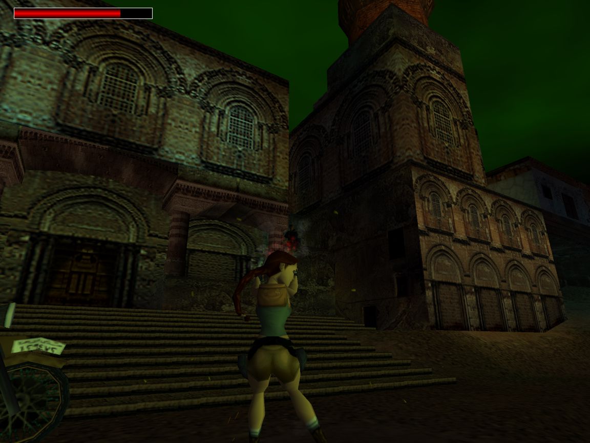 The story opens with a nicely rendered FMV depicting Lara's disappearance after her last adventure. Her loved ones are all at her mansion and morn their loss. They proceed to the study in the mansion and talk about Lara's past exploits - "exploits that have until now remained a secret ..." Ohhh... how's that for a story? We then see Lara at an Opera in Rome making a deal for a stolen gem. She get's double-crossed, then kicks butt, blah blah ... normal Tomb Raider scenario.